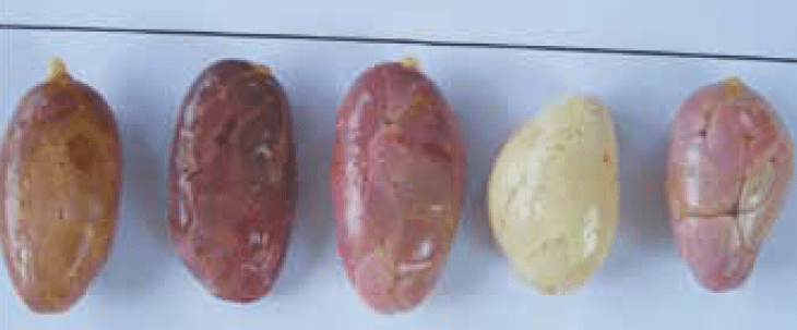 The shape of the seed also varies a lot from triangular, ovoid, elongated or rounded, flat or crushed.