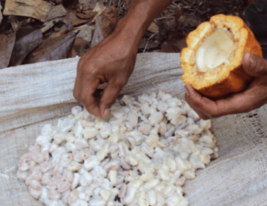 taste to chocolate flavor and separation of cotyledons of the seed.